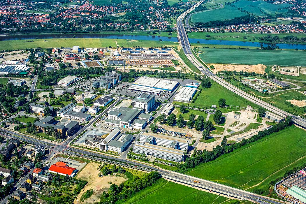 Auf sich einst weit erstreckenden Wiesen und Feldern brummt heute das wirtschaftliche Treiben. In der Entwicklung des SIGMA Technopark Dresden spiegelt sich die wirtschaftliche Entwicklung Deutschlands wieder.